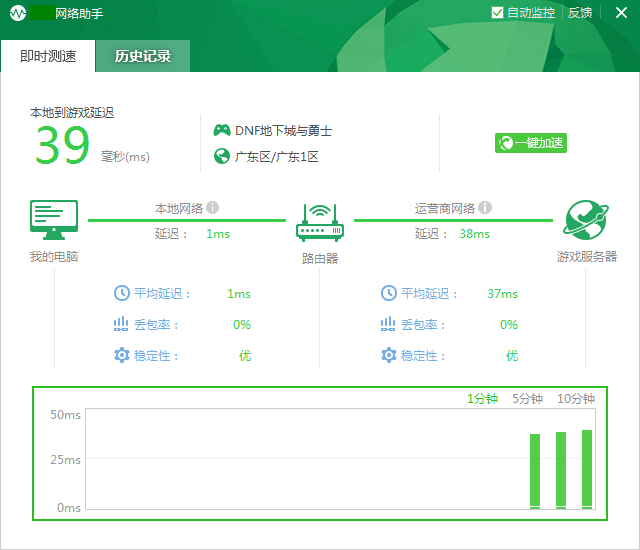 迅游网络助手为一款网游玩家的网络辅助检测产品,实时检测、纪录、报告网游过程中的网络状况及相关信息;测试检测网游过程中的网络故障,并同时为用户推荐网络的优化建设的一体化网络辅助产品